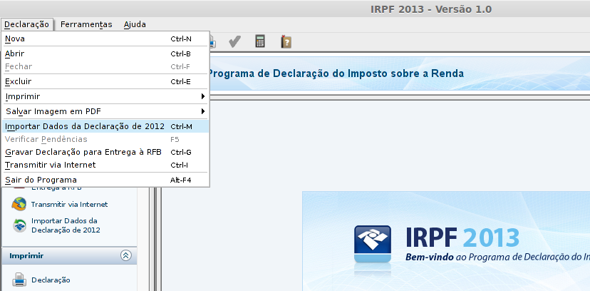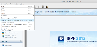- No computador novo (destino), instale o programa para declaração do IRPF do ano atual e acesse o menu "Declaração", "Importar dados da Declaração de 2012".