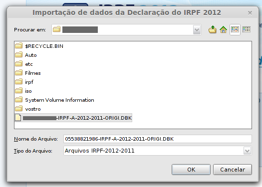 - Navegue até o local onde estão as pastas dos anos anteriores, encontre a pasta do ano imediatamente anterior (2012, em 2013), entre na pasta "transmitidas" e selecione a declaração desejada. Pressione Enter.